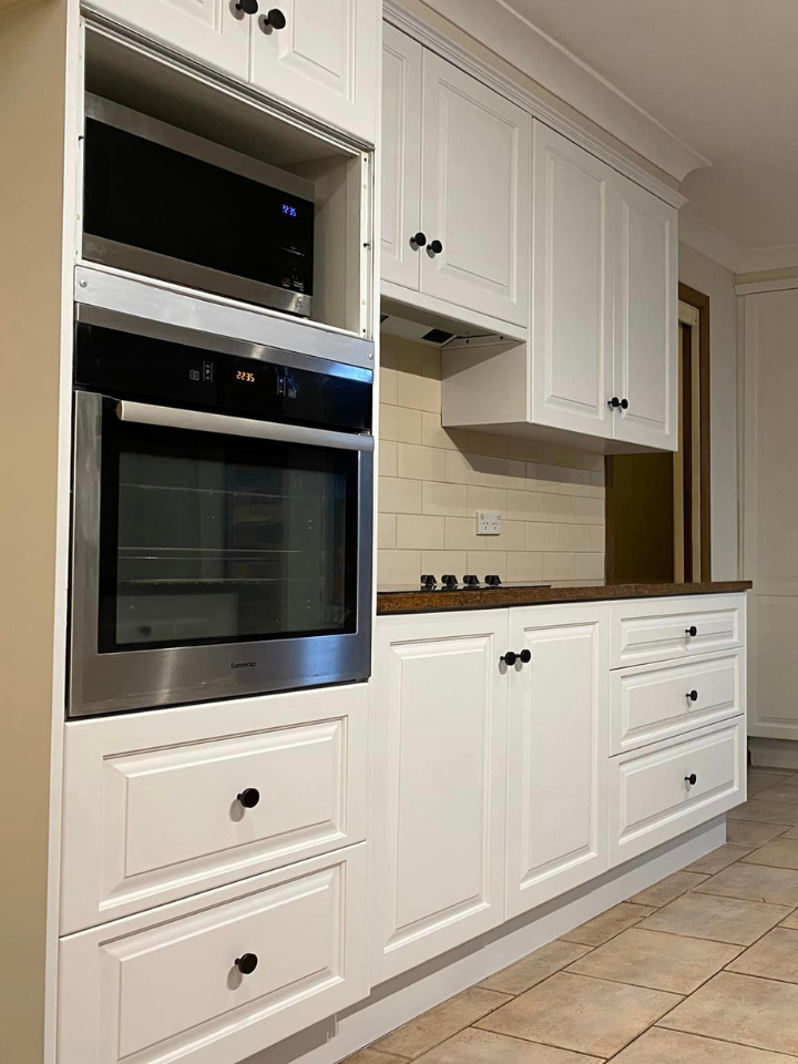 When the doors and drawers are ready, our friendly team will contact you to schedule an on-site day to spray paint all the panels. We will thoroughly mask all areas not being spray painted to ensure protection. The panels will receive the same preparation, including the color and finish of your choice, before being sprayed.